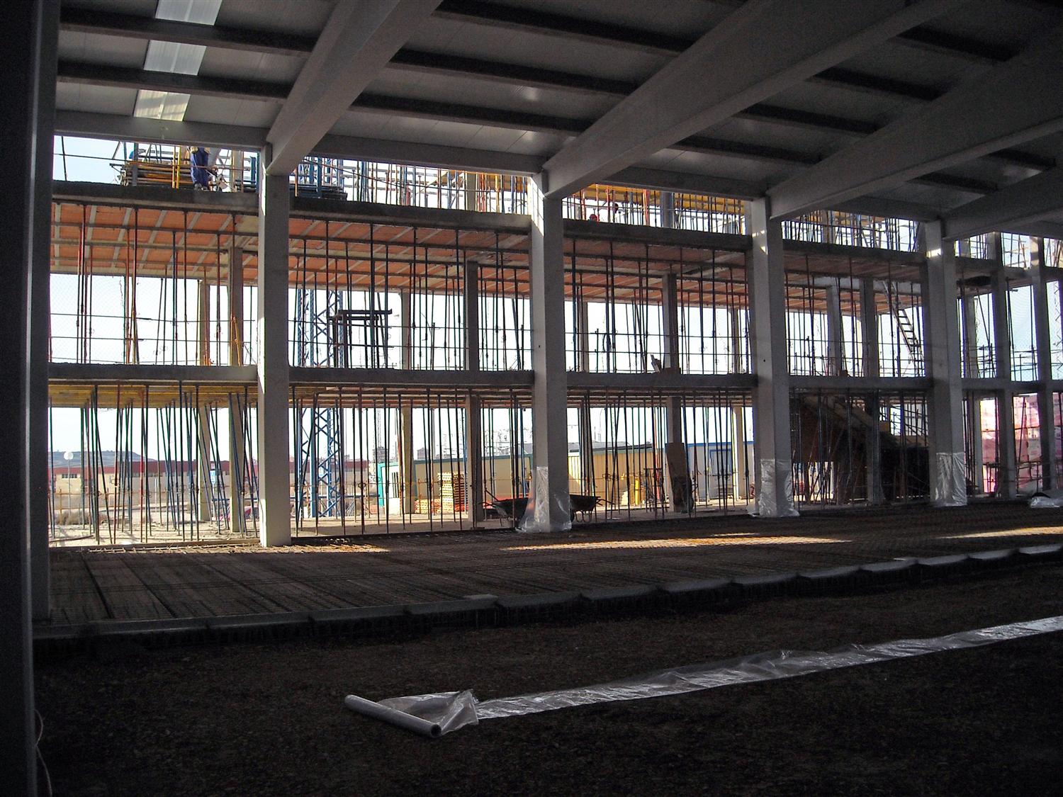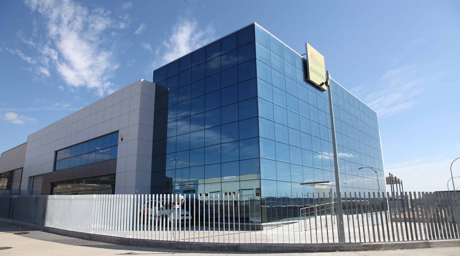 Implantación de sede central de GRUPO ENERPAL mediante la ejecución de edificio de oficinas, nave industrial, y sótano con una superficie total construida de 1940 m², mezclando estructura prefabricada de hormigón armado y pretensado y hormigón armado “in situ”, y cerramiento a base de muro cortina de aluminio extrusionado de vidrio estructural con control solar y perfilería oculta y bandeja de chapa de aluminio lacado.